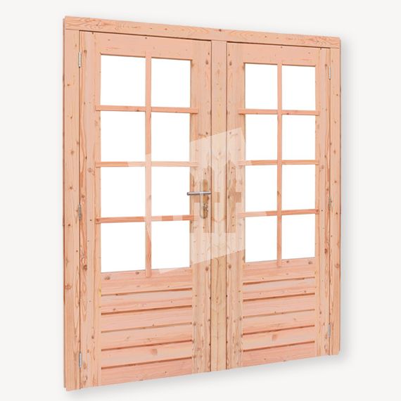 Alle toebehoren voor tuinhuis en overkapping blokhut ramen en deuren op maat douglas dubbele deur incl kozijn.