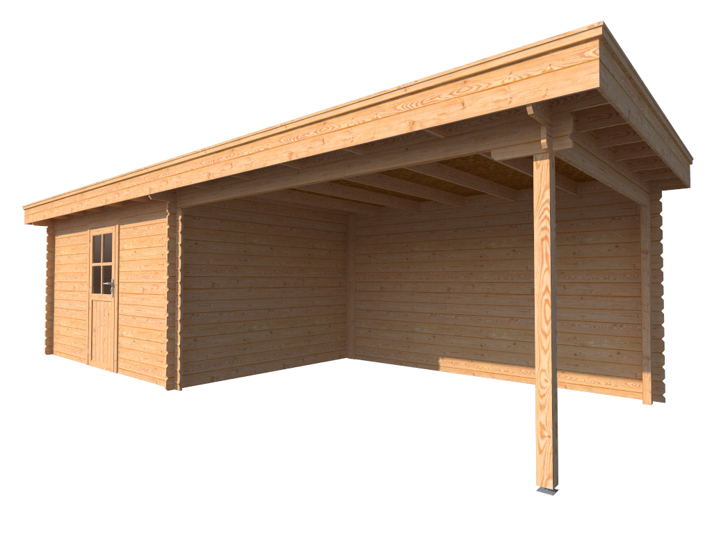Blokhut Met Overkapping Plat Dak 400 X 300 400cm Enkele Deur
